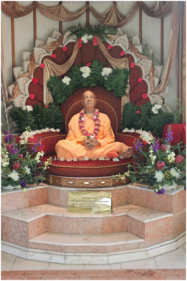The grand celebration was held at the most beautiful (or as Maharaj would say: “Out of this world”) Sri SriRadhaRadhanath temple in Durban, on the 8th of July. Beautiful red, white and lilac flowers adorned a royal white pandal that decorated the sitting place of the Vyasa asana.
